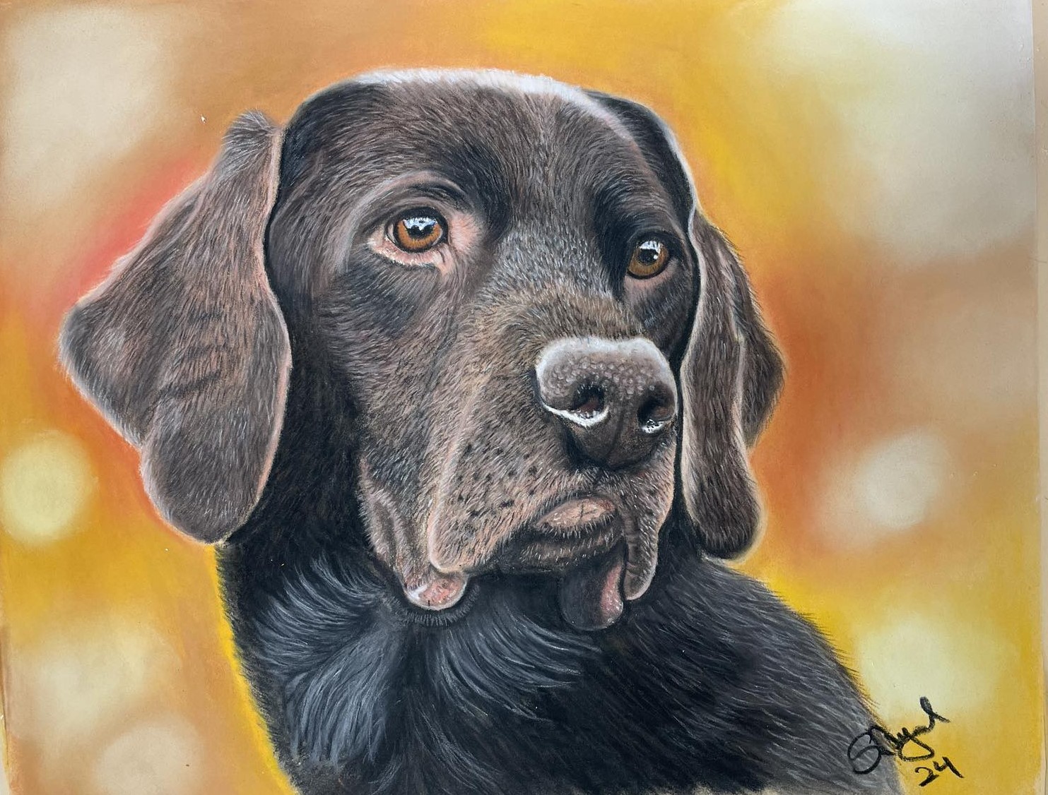 Brown labrador 30x40cm in white frame