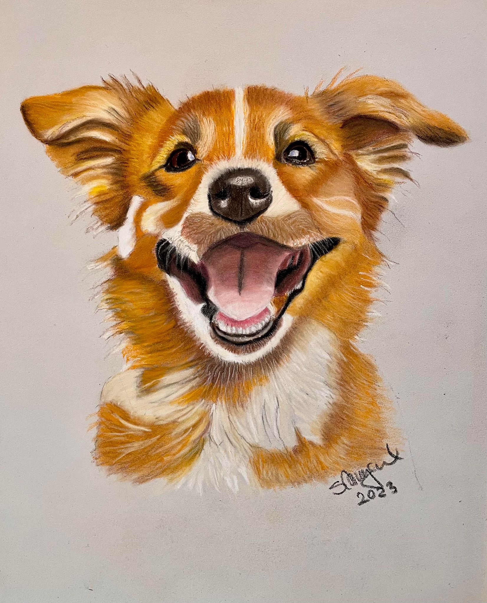 Cute happy dog, size 20x30cm comes with a white frame 30x40cm