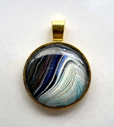 Pendant with glass cabochon, handmade from acrylic paint. All pendants are delivered with a ‘leather’ necklace and a nice gift bag. Each pendant is unique in its design, so you’ll never encounter another person with the same design.