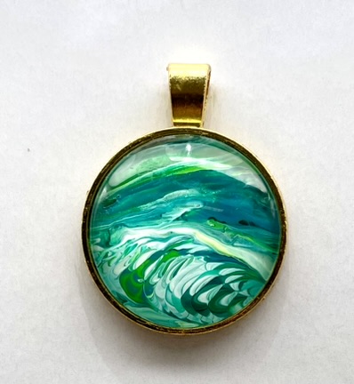 Pendant with glass cabochon, handmade from acrylic paint. All pendants are delivered with a ‘leather’ necklace and a nice gift bag. Each pendant is unique in its design, so you’ll never encounter another person with the same design.