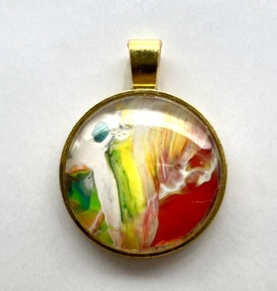 Pendant with glass cabochon, handmade from acrylic paint. All pendants are delivered with a ‘leather’ necklace and a nice gift bag. Each pendant is unique in its design, so you’ll never encounter another person with the same design.