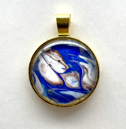 Pendant with glass cabochon, handmade from acrylic paint. All pendants are delivered with a ‘leather’ necklace and a nice gift bag. Each pendant is unique in its design, so you’ll never encounter another person with the same design.