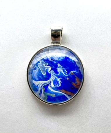 Pendant with glass cabochon, handmade from acrylic paint. All pendants are delivered with a ‘leather’ necklace and a nice gift bag. Each pendant is unique in its design, so you’ll never encounter another person with the same design.