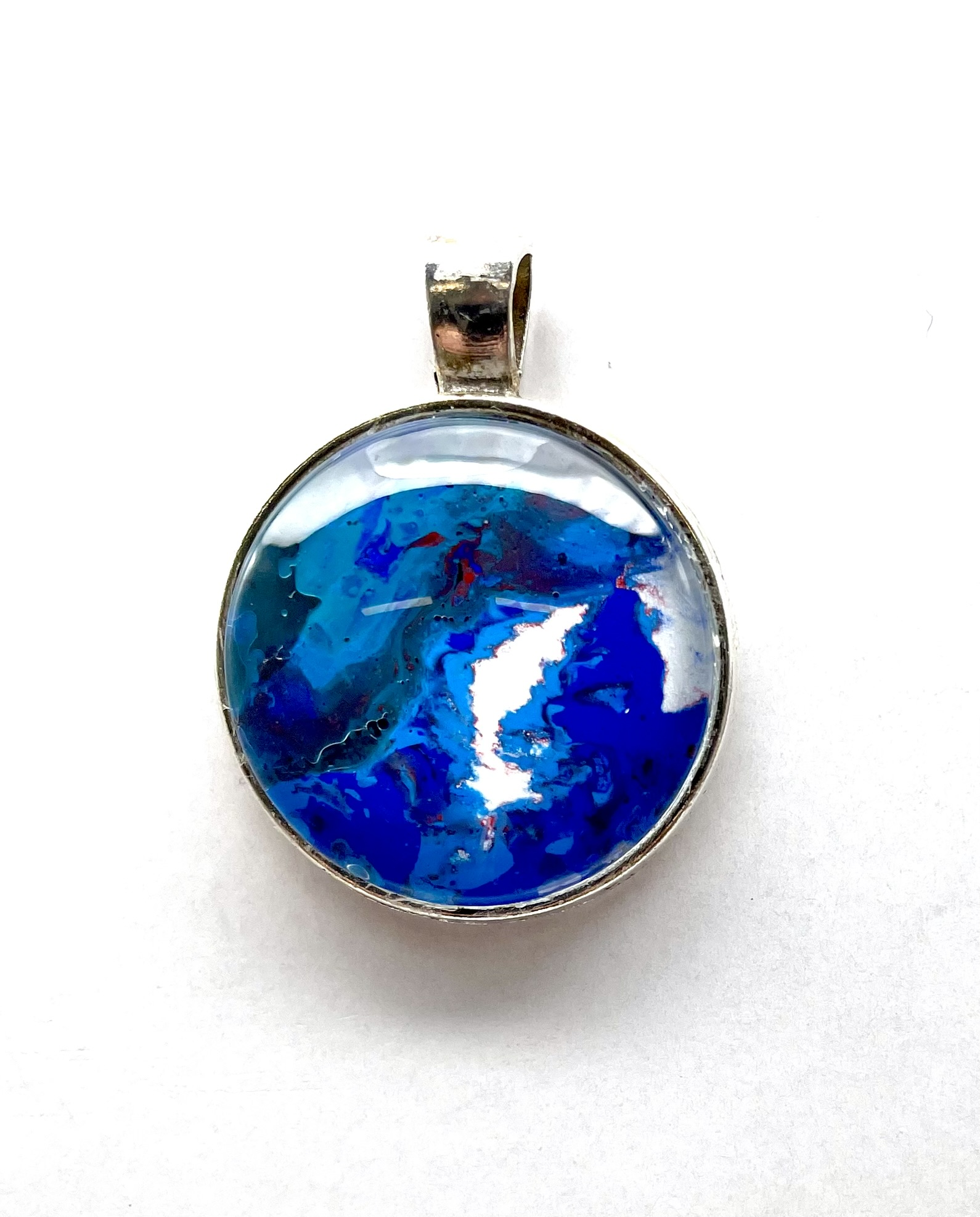Pendant with glass cabochon, handmade from acrylic paint. All pendants are delivered with a ‘leather’ necklace and a nice gift bag. Each pendant is unique in its design, so you’ll never encounter another person with the same design.