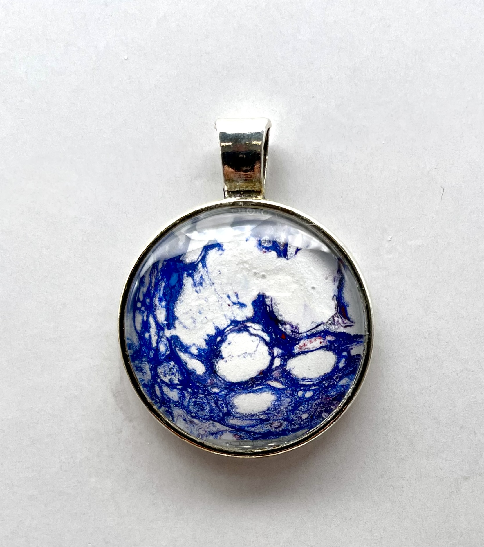 Pendant with glass cabochon, handmade from acrylic paint. All pendants are delivered with a ‘leather’ necklace and a nice gift bag. Each pendant is unique in its design, so you’ll never encounter another person with the same design.