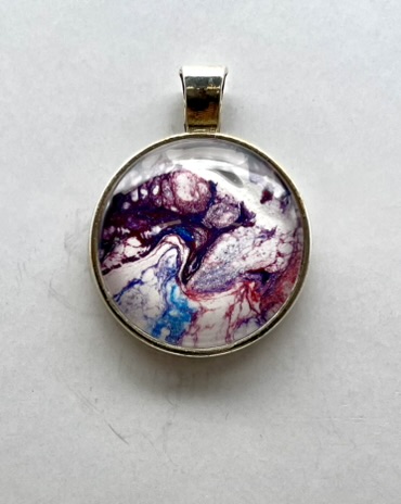 Pendant with glass cabochon, handmade from acrylic paint. All pendants are delivered with a ‘leather’ necklace and a nice gift bag. Each pendant is unique in its design, so you’ll never encounter another person with the same design.