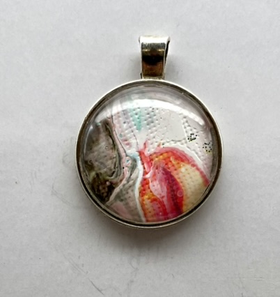 Pendant with glass cabochon, handmade from acrylic paint. All pendants are delivered with a ‘leather’ necklace and a nice gift bag. Each pendant is unique in its design, so you’ll never encounter another person with the same design.